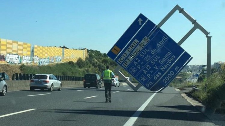 Painel informativo caiu no sentido norte-sul, à entrada de Lisboa.