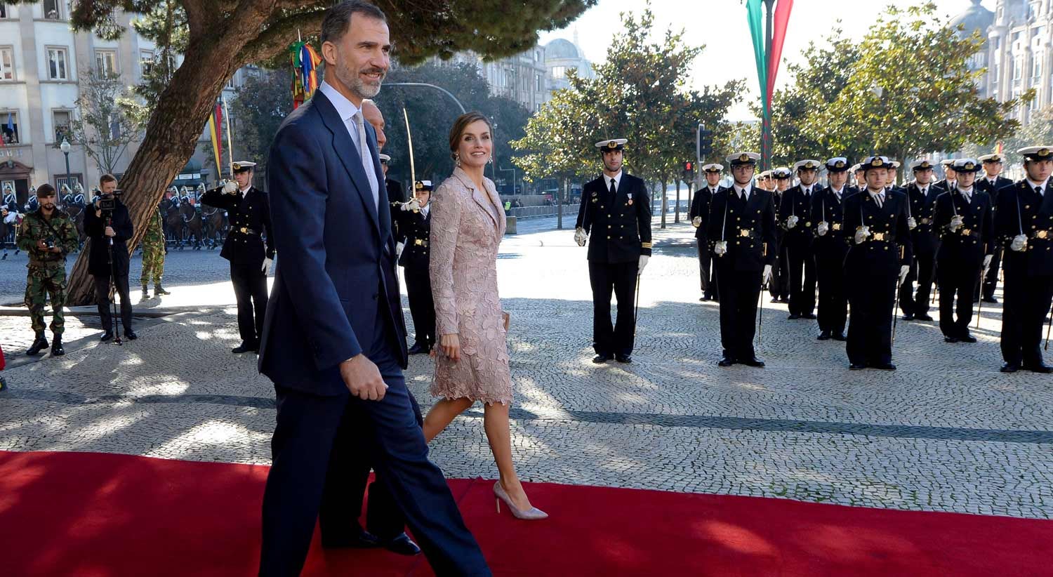 Os reis de Espanha, que chegaram hoje às 11:14 à Praça General Humberto Delegado, no Porto, foram recebidos pelo Presidente da República portuguesa, Marcelo Rebelo de Sousa, e com honras militares.