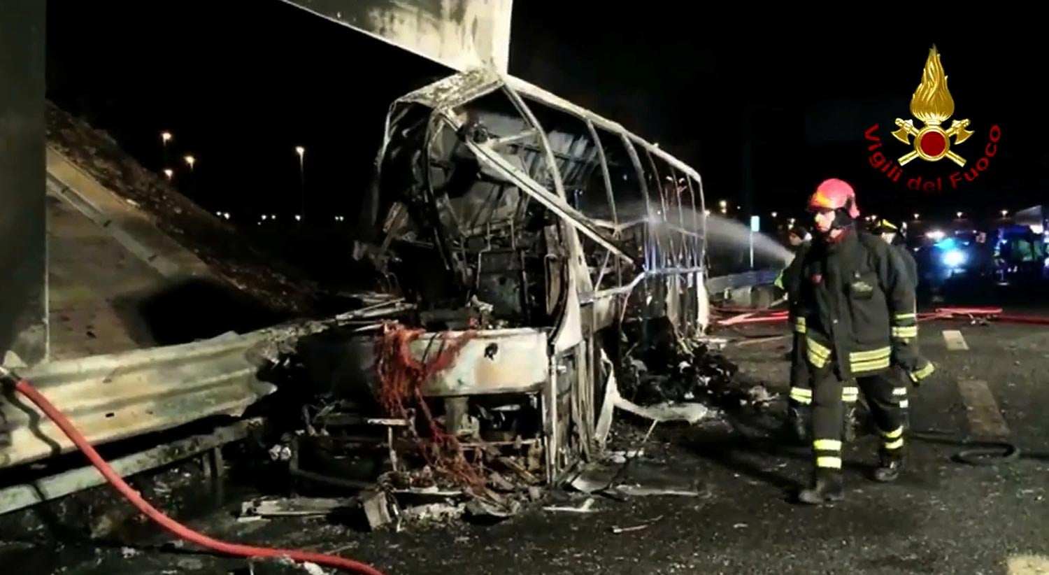 A polícia aguardava luz verde das autoridades para analisar os restos carbonizados do autocarro, segundo a agência noticiosa italiana Agi.