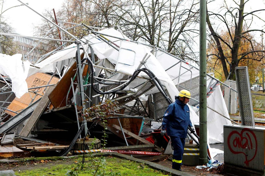 Na costa alemã do mar do Norte um campista de 63 anos morreu afogado num local que inundou. Em Berlim registaram-se feridos devido a queda de telhas e de um andaime.